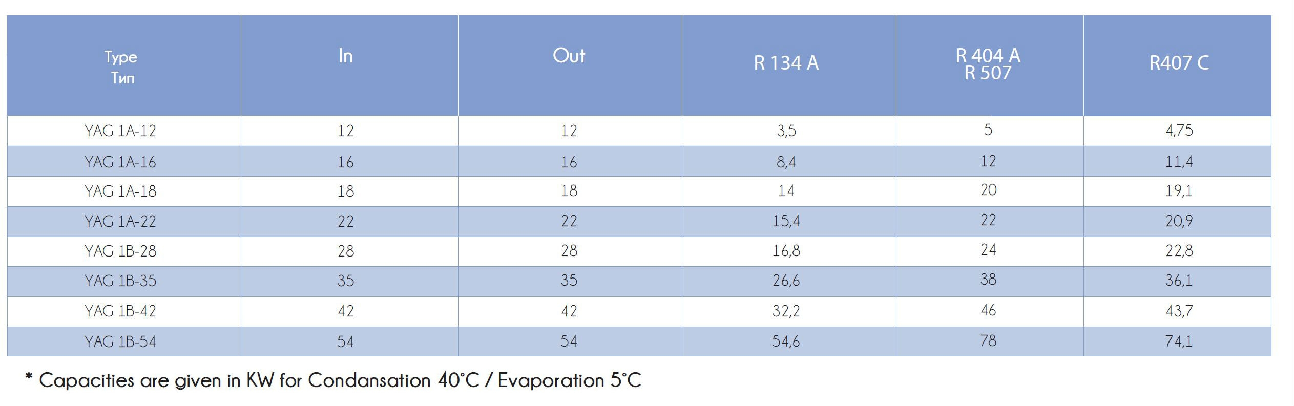 Отделитель масла серии YAG в жидкостной части системы используется на стороне выхода из компрессора. Должен быть установлен вертикально и перед началом работы должен быть заполнен необходимым количеством масла, указанным в каталоге.