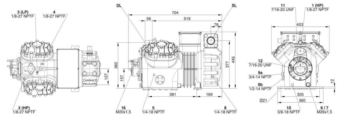 Схема-чертеж компрессора Bitzer 4GE-23Y: