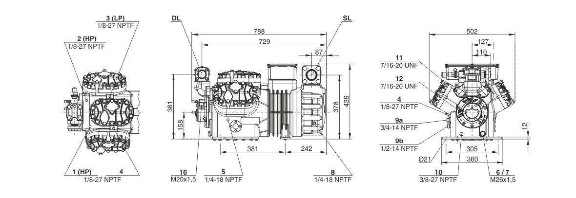 Схема-чертеж компрессора Bitzer 6FE-50Y: