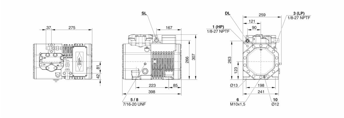 Схема-чертеж компресора Bitzer 2DES-3Y: