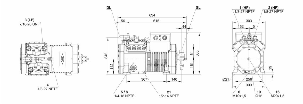 Схема-чертеж компресора Bitzer 4NES-14Y: