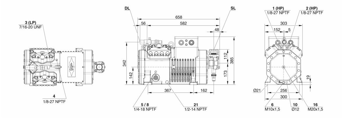 Схема-чертеж компресора Bitzer 4NES-20Y: